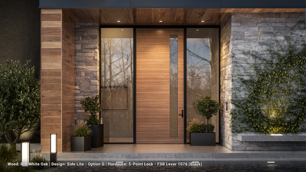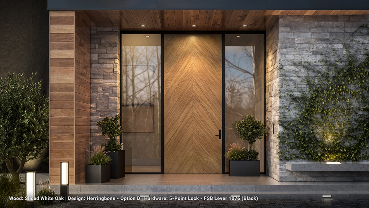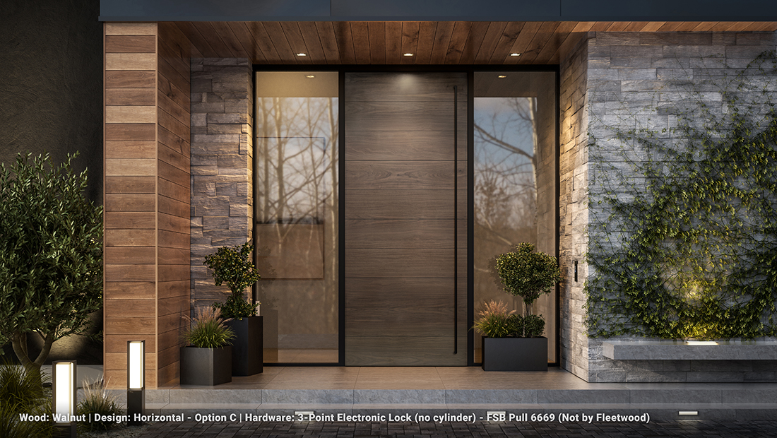 This innovation to the Gen4 line merges the warmth and richness of real wood with the precision and durability of our signature aluminum framing. Available in over 50 custom variations with a curated range of wood species and design patterns, the 4400 Wood Pivot enhances privacy, elevates curb appeal, and integrates effortlessly into Fleetwood’s whole-house window and door system.